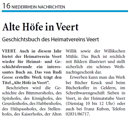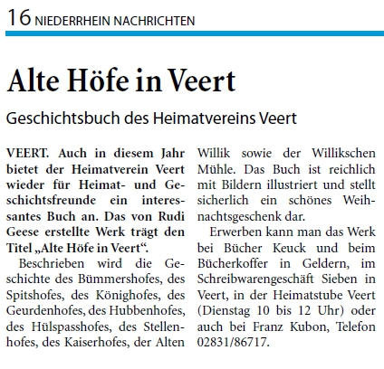 © 2017 by Heimat- und Verschönerungsverein Veert e.V. 1987